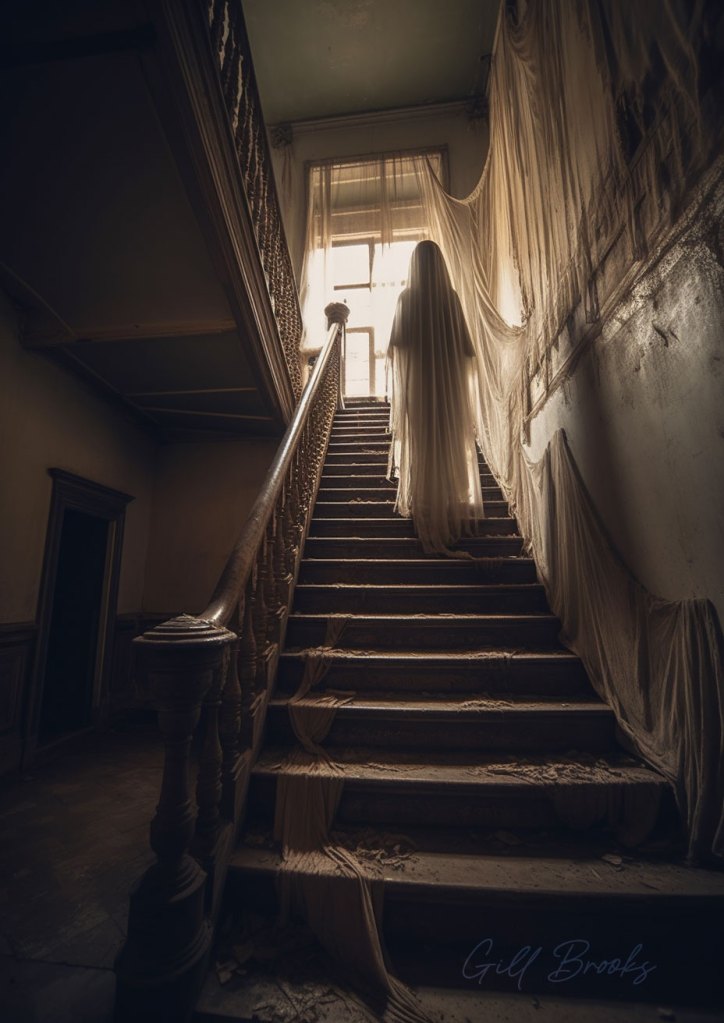 Once upon a time, in a small town nestled among rolling hills, there stood an ancient clock tower. The townspeople whispered tales about the ghost of a woman who haunted the tower, her tragic story passed down through generations. Legend had it that the woman was once a beautiful maiden named Evelyn, who lived in the town centuries ago. She was the daughter of a wealthy merchant and was known for her kind heart and gentle nature. Evelyn was deeply in love with a humble young artist named William. This was much to the dismay of her father, who desired a more prestigious match for his daughter.
