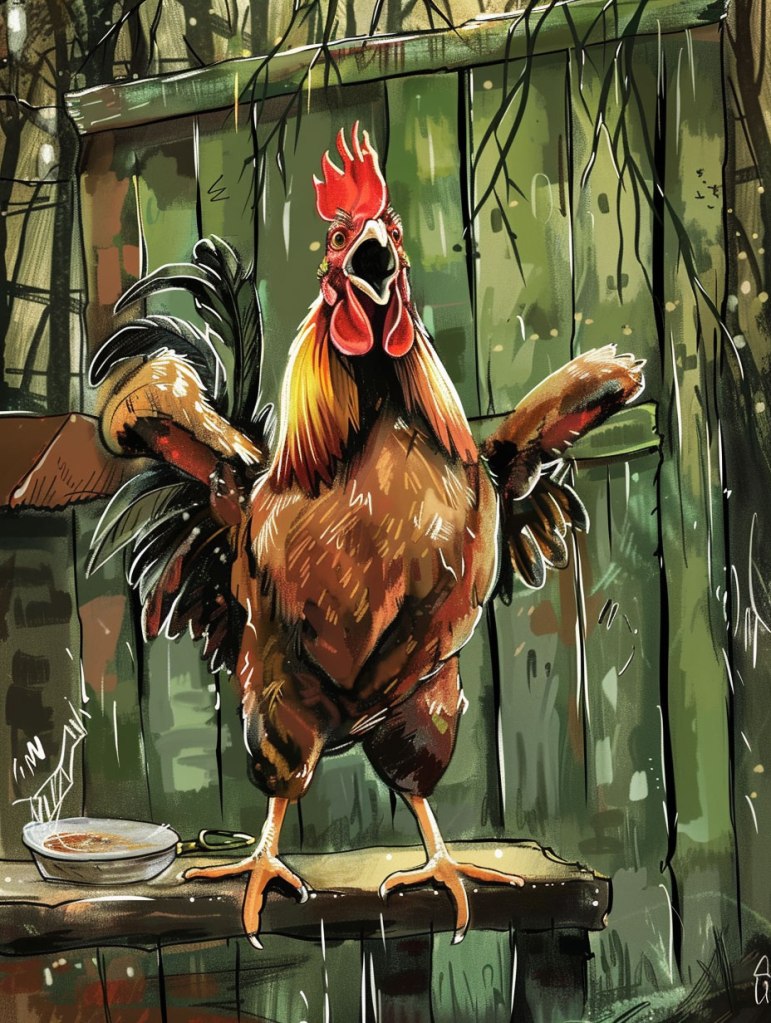 From that day on, Grumpy’s reputation as the grumpiest rooster on the farm began to fade. The other animals marvelled at the transformation that had taken place in their once cantankerous friend, and they all agreed that a cup of morning coffee was just what Grumpy needed to start his day on the right foot. And so, the tale of Grumpy the Rooster became a legend on the farm, a story of how a simple cup of coffee could turn even the grumpiest of creatures into a beacon of cheerfulness and goodwill. And as the sun rose each morning, casting its golden light over the farmyard, Grumpy would stand tall and proud, ready to greet the day with a newfound sense of joy and optimism, all thanks to his morning coffee.