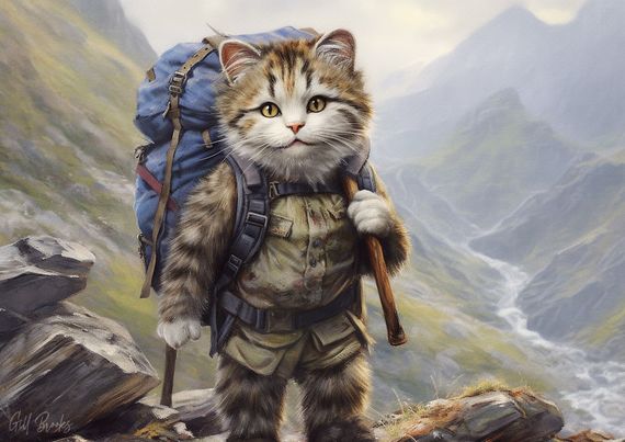 As they journeyed deeper into the wilderness, they encountered obstacles and challenges that tested their teamwork and spirit. They crossed roaring rivers on rickety bridges, climbed steep cliffs with sheer determination, and braved dark caves filled with mysterious echoes. Through it all, they relied on each other’s strengths and supported one another when needed. Along the way, they met a variety of creatures, from wise old owls to playful foxes, each sharing tales of the land and its secrets. They tasted sweet berries plucked from tangled bushes, drank from crystal-clear streams that gushed from the mountains and rested under the canopy of ancient trees that whispered stories of ages past. As days turned into weeks and the landscape changed around them, the trio forged a bond that transcended words and species. They became not just companions on a journey but a family united by a shared purpose and a love for the wild beauty of Wales. Finally, after many trials and triumphs, they reached the summit of the highest mountain, where a panoramic view of the rolling valleys and shimmering lakes unfolded before them. As they stood side by side, wind tousling their fur and whiskers, they knew that their adventure was not just a journey through the wilderness but a journey of the heart.