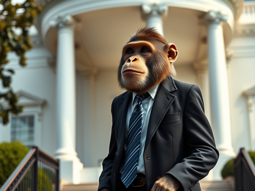 On election day, the nation watched with bated breath. When the results were finally announced, Max had won the presidency. The world was astonished; a monkey was now the leader of one of the most powerful countries on Earth. But those who knew Max understood why he had prevailed: his genuine desire to improve the world had inspired millions. As president, Max worked tirelessly to fulfil his promises. He implemented policies that protected natural habitats, promoted sustainable practices, and improved education systems. He introduced innovative programs emphasising coexistence between humans and wildlife, creating a legacy of environmental stewardship. Under President Max’s leadership, the nation thrived. People became more aware of their environmental impact, leading to a cultural shift toward sustainability. Max’s administration fostered a spirit of empathy and cooperation, reminding everyone that authentic leadership is about understanding and compassion, regardless of one’s origins.