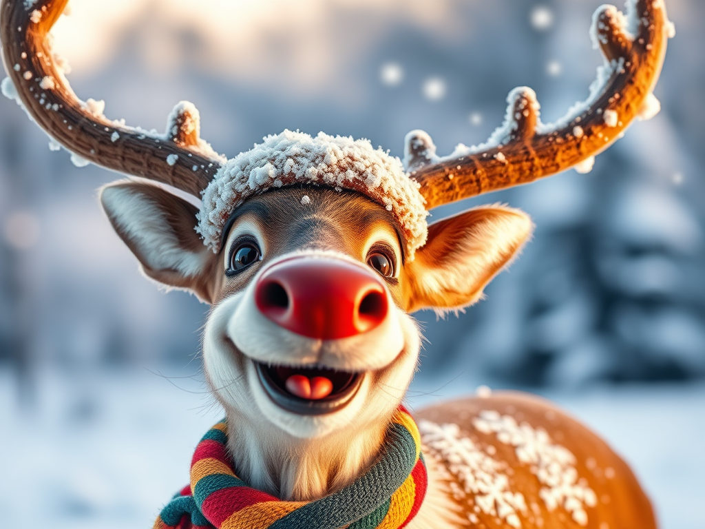 Once upon a time, in the snowy village of Evergreen, there lived a cheerful reindeer named Rudy. Rudy was known for his strength and speed, making him one of Santa’s most trusted sleigh pullers. As Christmas Eve approached, excitement filled the air, and Rudy couldn’t wait to help deliver gifts to children around the world. However, just a few days before Christmas, Rudy slipped on an icy patch while practising with the other reindeer and fell, breaking his leg. The pain was sharp, and he could hardly stand. His heart sank as he realised he wouldn’t be able to pull Santa’s sleigh this year. The news spread quickly through the reindeer barn. Everyone was worried about Rudy but knew they had to find a solution. Dasher, one of Rudy’s closest friends, took charge.