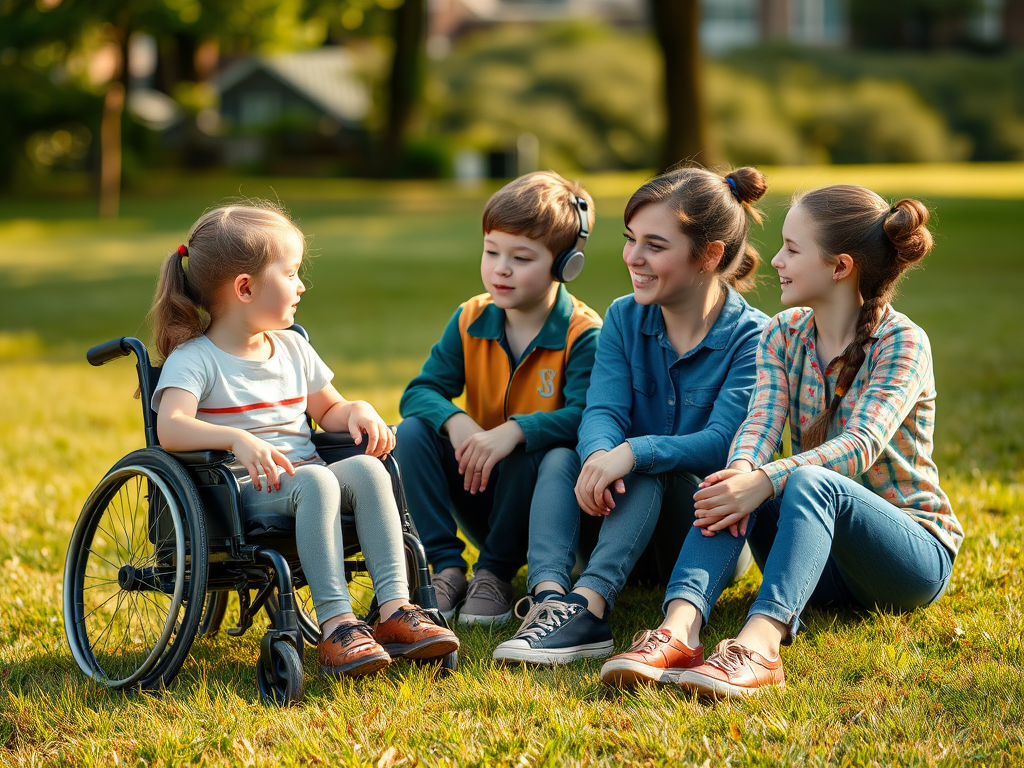 In a vibrant town called Harmonyville, three friends lived: Lily, Marcus, and Amina. Each of them was different, yet their friendship was unbreakable, and together, they proved that diversity and perseverance could inspire the entire world. Lily, a girl in a wheelchair, was born with a rare condition that limited her leg movement. Despite her physical challenges, she never let them define her. She was a brilliant thinker and a talented artist, and her contagious smile lit up every room. Marcus was a boy who used a hearing aid. Born deaf in one ear and hard of hearing in the other, he faced communication barriers but never let that stop him from singing, playing the drums, or sharing his ideas. His passion for music and his determination to be heard made him a natural leader among his friends. Amina was a girl with a learning disability that made reading and writing difficult. She had a creative mind and a warm heart. She loved storytelling and had a gift for seeing the world in unique ways that others often overlooked.